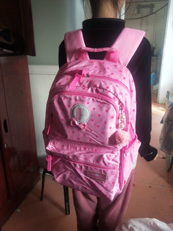 买了个书包,给哥哥妹妹一人一个,优惠了不少,打完折八十多吧!这个是买给妹妹的,女孩字喜欢一款,开学要贝贝新书包!刚开始还担心书包的质量不靠谱,到手一看比想象的要好多了,书包款式大方,感觉比较结实,布料厚实,颜色也不错,分层布局都很合理,三层的!可以将自己的学习用品分类。两侧还有小布袋,可以装水杯和雨伞,非常实用。背起来很舒服,空间很大,可以装许多东西,质量好。送了手表,铅笔和笔袋,但是送的东西很一般般的。总体上,这个价位的书包觉得确实便宜又实用,实在是很满意。