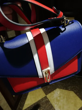 包包很漂亮时尚,妹妹很喜欢。带子很长,可以调节,容量还可以,就是合成革有些硬。快递很快,态度好。