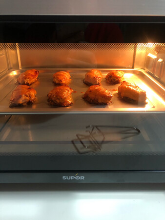 昨天烤了饼干,火候没有掌握好,有些焦了,但还是可以,不难吃,今天的鸡翅不知道怎么样,烤箱很满意!