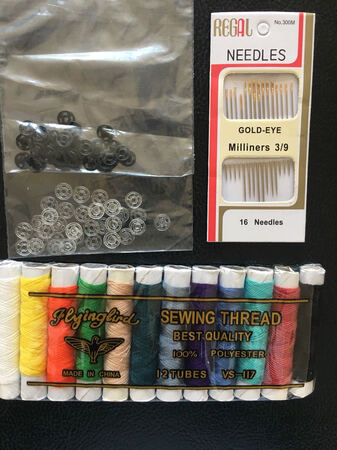 买了15付黑色和15付白色,4·5x2=9元+快递6元共15元。收到如图:15付黑扣+15付+18枚缝针+12只缝线团。店主服务超好。卖家真心不易!