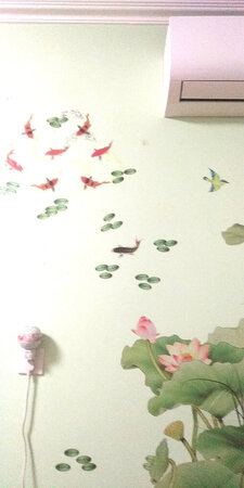 放在大厅的作为电视背景墙。大气。尺寸大小整好。产品无气味。贴在墙上栩栩如生。动感活力。