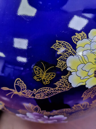 虽然是普通快递,但也只等了两天,包装很好,定型的厚实泡沫和纸箱,足以看出商家的用 拆开花瓶没有破损。收到这款景德镇的落地陶瓷器花瓶摆件着实第一感觉就是高大上,比想 象中的大呢,本来是采购来自用放茶架上的,现在只能摆办公室中当观赏了。出自景德镇的 陶瓷,虽然远看是很漂亮,本人很喜欢这个花色,花纹也逼真,画面很有寓意。花瓶表面光 滑,质地很细腻,净亮如镜的表面,很有光泽,但毕竟是手工贴花的,近看还是有点美中不 足,而且瓶口处的着色也太少了,只能将就着远观了!