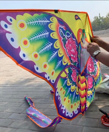 刚开始选择这个风筝是为了凑单,觉得这款颜值很高,结果收到货一看,超大一个风筝,完全出乎意料到现在还没找到合适的地点来放。整个风筝的布质量不错,不易破,杆子很轻巧,配的手柄线圈里的线质量不错,比较粗,感觉不会断。