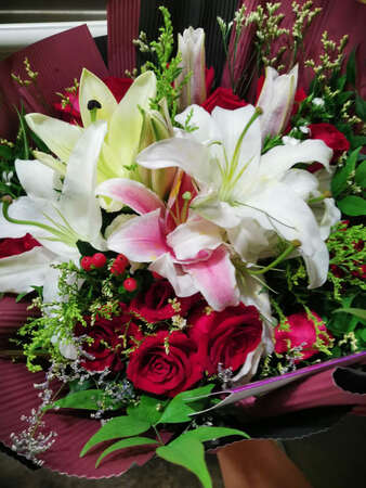 第一次在店家购买鲜花,收到时,外包装完好无损,鲜花非常新鲜,漂亮好看,物流也很快,满意好评了