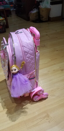 书包收到了,跟图片相符,质量挺不错的,款式孩子也喜欢,送了很多赠品,孩子开心得不得了,不错。希望拉杆耐用!