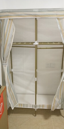 外观样式:简约风,配色清爽。 安装体验:安装比较简单,这个是给老人买的,老人家自行安装,顺利完成。安装还是很简便的。 这个是给新房子买的,小房子缺一个衣柜,但是现在还没有规划好用腿,就先买一个简易衣柜用下。衣柜整体不错,结实,可以用一段时间。