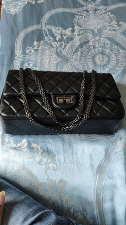 外观很好看,包包稍微有点硬。从五金件上感觉不像是正品,袋子的链条上有黑点,下边的五金件也有点像生锈的感觉,上边也是有黑点。logo的字样也不清晰。不过价格也不算贵,就当一个普通包包在用了。