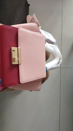 外观颜值:设计还是有点款式,浅粉和深红搭配 材质手感:皮应该是真皮,刚拆箱拿上手很重,以为是皮和材料都重,打开里面是有包装纸,不过还不是轻盈款,而且有个内包 容量空间:实际很小个,也就放下钥匙和手机钱包这样,没有图片那样大,放完上面的几样差不多完了 做工细节:刚开箱不懂怎么开包,原来是有个按键左右移动,没有标注和说明,而且打开几次就有了折痕,因为送人的,对方没有暴力使用,估计就像皮鞋一样,又两步路就会有折痕,但是客服说有折痕不给退货,京东快递也和客服通话来,好像还是因为这个折痕,其实也就正常开包和看看包的结构,这点折痕无法避免,这不给退也是有点说不过去,不过也行,买了就不退了 适用场合:喜庆点~~