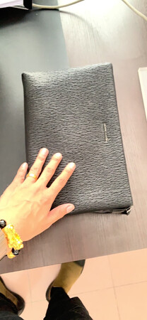 第一次在网上买奢侈品,送给老公的生日礼物?,包包挺大的,试过可以装下p30的手机,放个护照什么的应该也没问题;整体是硬质的,不像我想象中是软的;拉链不太顺滑;包装很简单,没有英文的吊牌和价格,也不是传说中的西装小哥配送,就是普通快递;经验不足,无法判断是否正品,只能相信京东自营