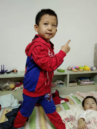 儿子生日寄回老家的,奶奶说穿上正好,看他高兴的