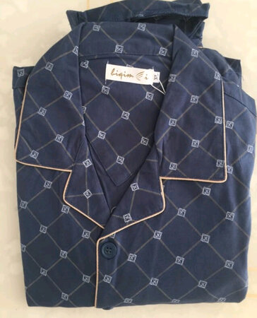 呆呆鹿中年人睡衣到货很满意。 1,衣服的质量好,到货后先洗了,不掉色,不缩水,穿着很舒服。 2,衣服的款式漂亮,穿上显的精神,对开扣穿脱很放便。衣领处有加厚,多次清洗都不容易变形。 3,包装和物流,包装环保,物流很快。