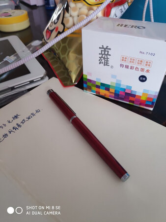 写字比较流畅,用了一个多星期了,但是感觉性价比不高,150块的钢笔已经属于中高档的笔了,但是没有感受到中高档的感觉。后期追评,目前使用可以,可以考虑购买。(图1里面是刚打开时的样子,)