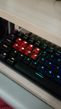 耐用度:这个要过一阵子才知道耐用性怎么样,不过目前看起来应该还可以吧,这个表面上的这个面层做法如果要完全抹掉,估计还得要一阵子时间。 舒适度:手感挺好的,也不是特别的光滑,另外也不是太显手印,不会太显脏,我觉得挺好的。 操作难度:茶轴的RK机械键盘。装上去的时候觉得稍微不是那么顺畅,但是也还算行吧。 外观颜值:主要是之前很想买他的水晶键,就是两层塑料的,现在基本上都没有了,要么就买整个104件的,觉得太多了,所以这个12件的最后选了这个红色的类似烤漆还可以吧,不过总觉得还是没有水晶键的好。 响应速度:手按反应起来都挺好的。