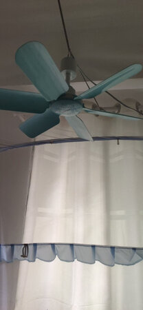 孩子活力大,这时候还要风扇,大的风扇太厉害,只好买个小吊扇了。
