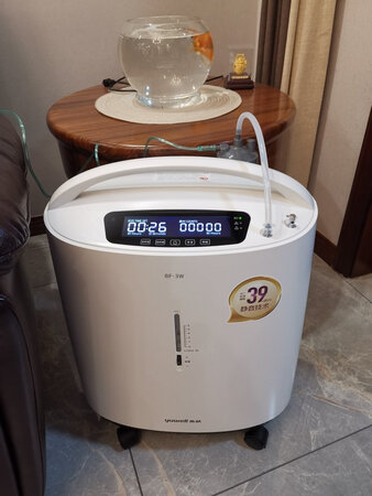 给老爸买的,老爸多年的肺气肿,以前用的制氧机坏了,老爸让买个好点的,我就选择了鱼跃,我头一天买第二天老爸就收到了,包装很好,老爸说箱子套箱子,开封就试,老爸特别满意,还给我发过来照片,声音也比以前那个小了,出氧量也满意,老爸说咱国产的就不错么,逢人就推荐,~群给人推荐说他买的制氧机有多好,我们做儿女的,老人满意我们就开心!