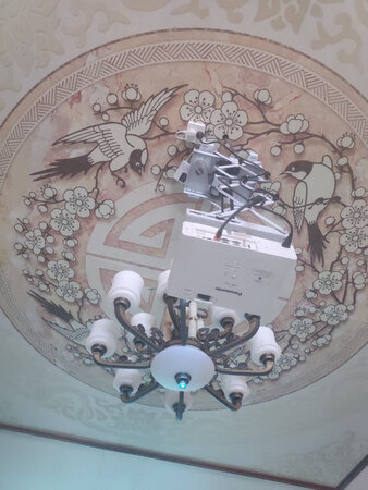 因为墙上装了电视机,所以幕布需要离墙一段距离。无意发现了这个支架,非常好用