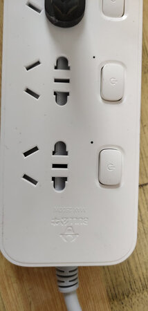 产品质感:白色塑料,质感不错 其他特色:两个对着的孔位之间的间隔不够大,插了一个iPad充电头后对面的孔位就用不了了