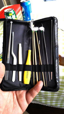 不错,各个零件都试用了。金属耳挖挺好上手的,两头都可以用。探光耳挖有大小两个耳挖头可更换,透光性不错,可以很好的捕捉小朋友耳朵里的耵聍。镊子真是不错的配置,待探光灯,镊子头也很小很细,内侧有齿纹,方便夹住东西固定,不易脱落。总体评价很不错。