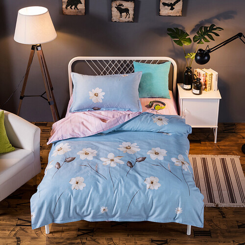 面料材质:棉 颜色图案:床单和被套一面是一样的 触摸手感:还好 产品包装:不错 其他特色:色彩不错