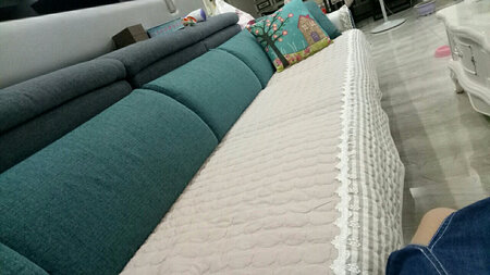 家里的沙发垫一直想换一换,却选不到特别喜欢的,无意中看到这款,怕颜色有色差,想买来试一下,所以先买了垫子,没想到颜色很满意。而且背面是防滑的,家里小朋友坐上去乱动也不会把沙发垫弄的到处跑了。这个沙发垫也不是很重的那种,原来家里用的沙发垫放洗衣机里洗完更是拿不动。总体来说很满意