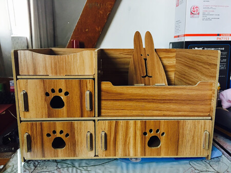 容量大小:容量适中,不太大,也不太小。 实用性能:能放下很多东西。占地面积小,容纳东西多。能够使桌面很整洁。 商品材质:木制材料,摸起来很舒服。 其他特色:产品非常美观,甚至可以当做装饰品。看着非常赏心悦目。尤其产品的性价比很高。拼装步骤也很简单。