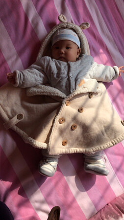好可爱的小斗篷!宝宝六个月。个子不小,感觉有点小。颜色质量棒棒哒。