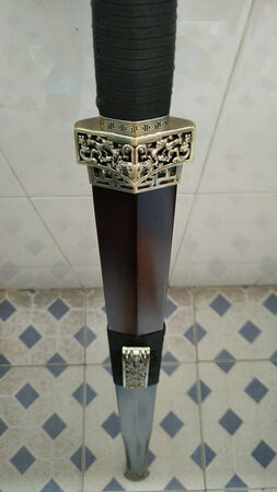 剑身有些歪,反过来放不进去。 剑身上还沾了蛮多的东西的,你们剑鞘?里面是不是没有做过精打磨的啊 还有就是剑柄的缠绳有些滑手,希望没有什么大问题出现吧。 暂时先这样看着吧
