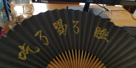先说一下,送过来后,扇骨就有缺陷,合拢不住,不知道是商品本身问题还是快递途中的损坏。 再者就是这个字写的,完全是糊弄,连我外甥写的好都没有。 吃字写的也就是醉了。
