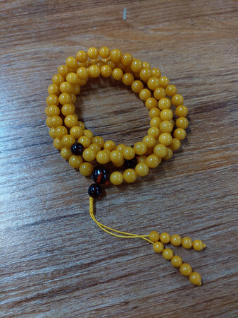 耗时半小时,自己穿的一个手链,感觉挺满意,青金石,血珀,蜜蜡,海蓝宝,还有一个玛瑙的三通,就是最后打结的地方马虎了一些,毕竟不专业,客观的说,6mm的珠子稍小一些,8的应该更合适,具体多少个珠子忘了算了,大概90+吧,珠子很棒,而且送了好些东西,引线呀,袋子呀,弹力线呀什么,很不错,就是因为第一次数量估计错误,导致又买了一次,送的没那么多,只有一根红绳手链,我太贪心了,哈哈,很不错,以后有需要还会来这里买,赞一个