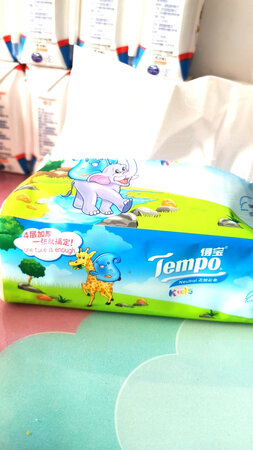 我一直用的都是德宝的四层面巾纸,这次是因为这款纸有优惠而且也是四层的,就买了试试的,结果呢,我觉得下次还是买德宝吧,这款虽说也是四层,但厚度明显不及德宝的厚实,但相较于其他面巾纸,这款的表现应该也算不错,纸质细腻,没发现掉渣,韧性也可以,看各位自己的需求吧! 包装图案挺好看哒