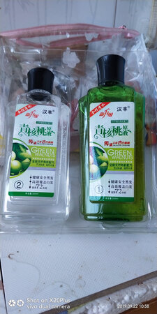 汉丰青核桃源液,染发膏染发剂,清水黑发一洗黑,我们一年前买过一次,两盒第一盒选下的是黑水,第二盒不但是黑水,还有怪味很浓,我们很是失望,后又买了,玛奇诺禅洗白转黑洗发水,先几次还不错洗的是清水,无味,也黑,谁知几次后,洗的是黑水了,还掉色把枕套白色染黑了,我真不明白了,哪儿错了,后我又查找了青核桃源液,店铺找了个四星的,查看了评价发现评价都很不错的,就又买了这种青核桃源液,用了一次不错,洗的是清水,有一点味觉可以接受,头发干后我用白色巾纸,擦了又擦很不错的没掉色,不知后两并怎么样?质量,但愿商家是正牌的商家。