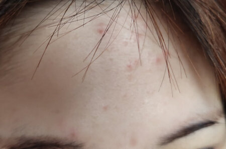 怀孕额头长了好多痘痘,第一次用这效果不错,痘痘下了不少哦!希望国货没激素?